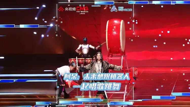 在《迎客鼓》中,智元远征A2机器人将与歌手阿朵、苗鼓十三姨共同呈现一场科技与非遗的惊艳碰撞。通过动作捕捉技术,机器人完成苗鼓技法的学习与训练,鼓槌翻飞间,既保留了传统苗鼓的韵律灵魂,又赋予了机械特有的力量美感。为了实现整齐划一的视觉效果,团队采用了群体控制软件,保证机器人动作的精准同步,大大满足“强迫症”和“细节控”。智元远征A2机器人的才华不止于此,它还将担任盛典主持,在与总台主持人陈伟鸿、朱迅的互动中,展现智能语音交互能力。