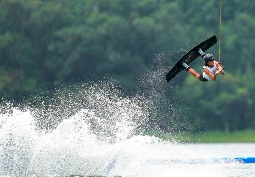 ↑8月9日,美国选手克劳迪奥在世运会男子索道滑水复活赛中。新华社记者 贝赫 摄