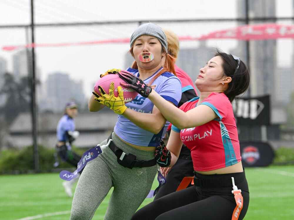 ↑3月8日,NFL FLAG女子腰旗橄榄球邀请赛在成都举行。新华社记者 王曦 摄