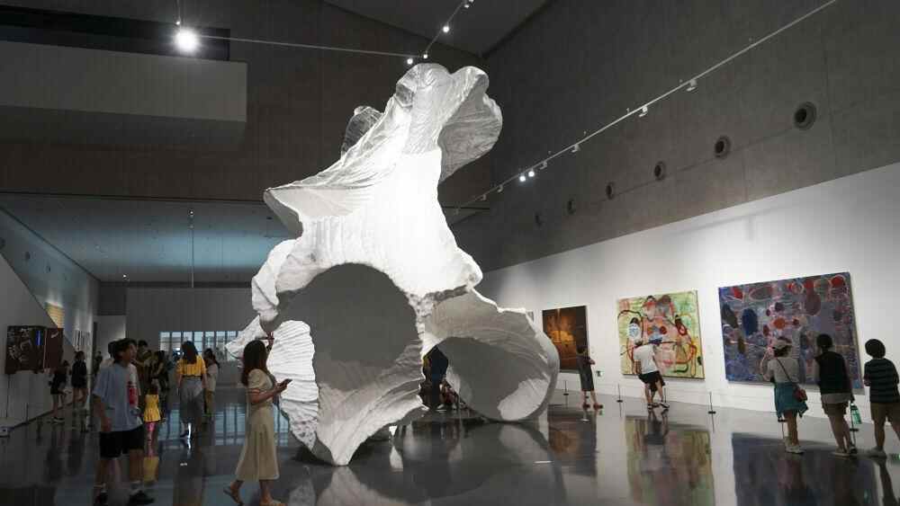 ↑2023年8月4日,观众在“2023成都双年展”展厅内观展。“2023成都双年展”在成都大运会期间举行,展览人气爆棚。新华社记者 尚文意 摄