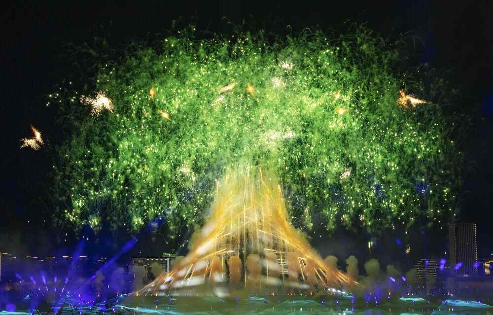 ↑这是2023年7月28日拍摄的第31届世界大学生夏季运动会开幕式焰火。 新华社记者 江宏景 摄
