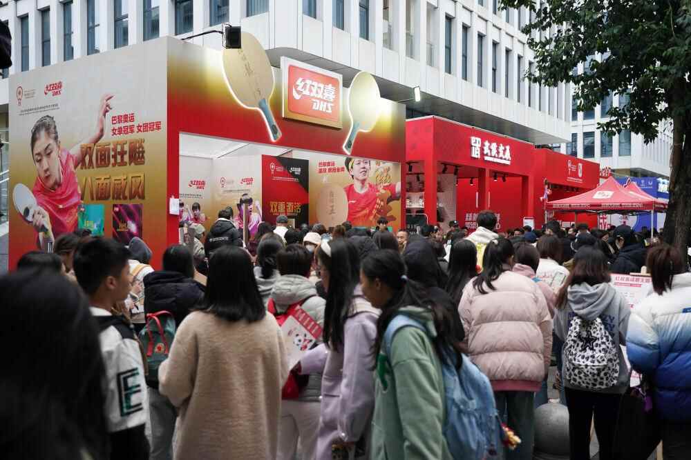 ↑2024年12月7日,球迷在成都参与2024乒乓球混合团体世界杯赛事周边活动。新华社记者 胥冰洁 摄