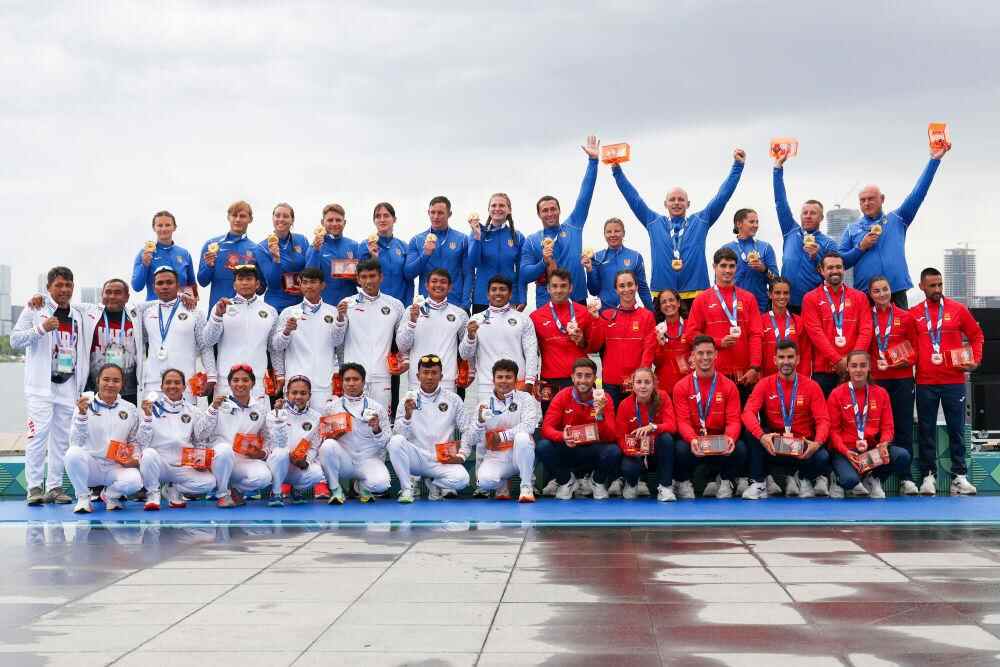 8月10日,在2025年成都世运会龙舟10人座500米决赛中,印度尼西亚队获得冠军。新华社记者 李嘉南 摄