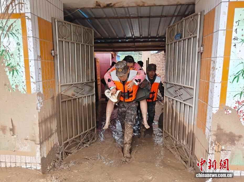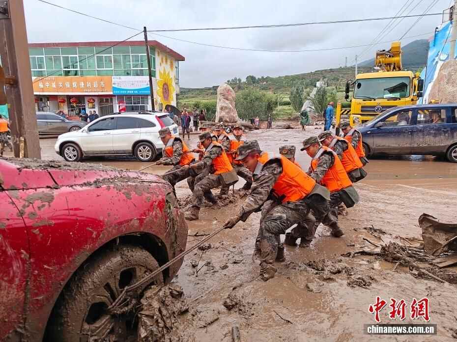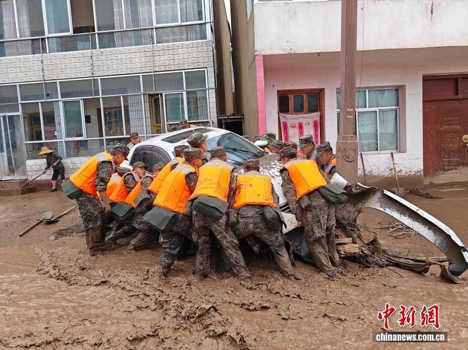 截至8日晚,武警甘肃总队投入396名兵力开展道路清淤、人员搜救、搬运物资等救援行动,共转移群众171人、搜救被困群众5人、救治受伤群众2人、清理危房6处、转移受损车辆12辆,累计清理淤泥、山石700余方,搜索河道6公里、抢通道路2300米。图为8月8日,武警甘肃总队机动支队官兵挺进灾区甘肃省兰州市榆中县马坡乡旧庄沟村展开救援。