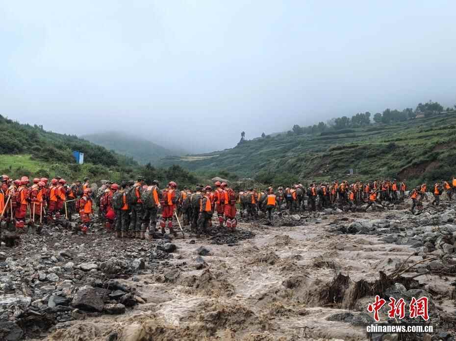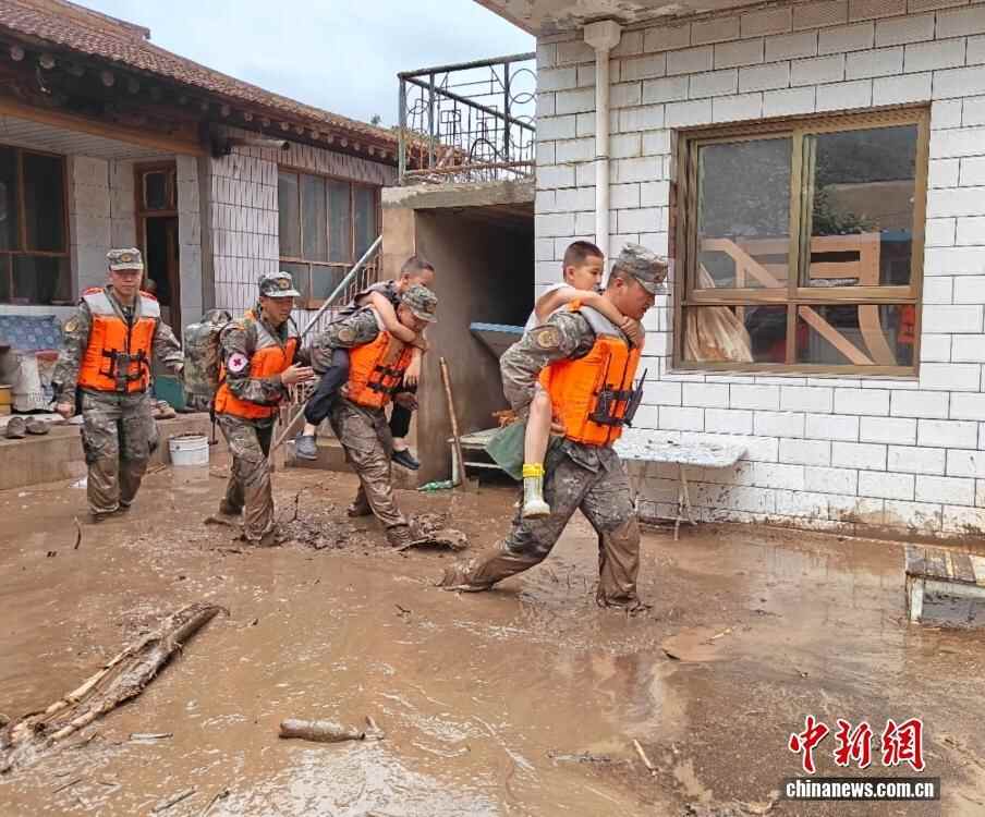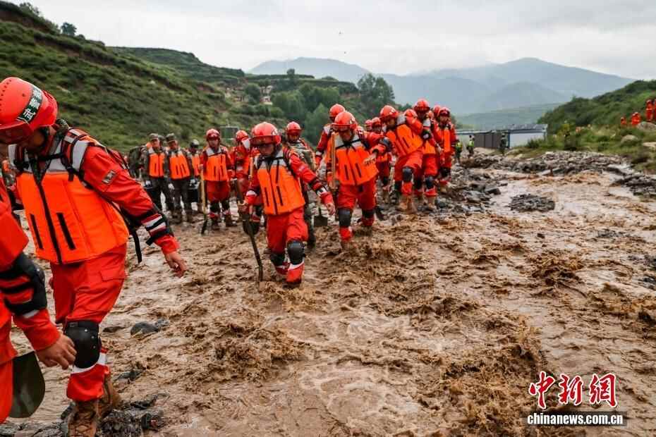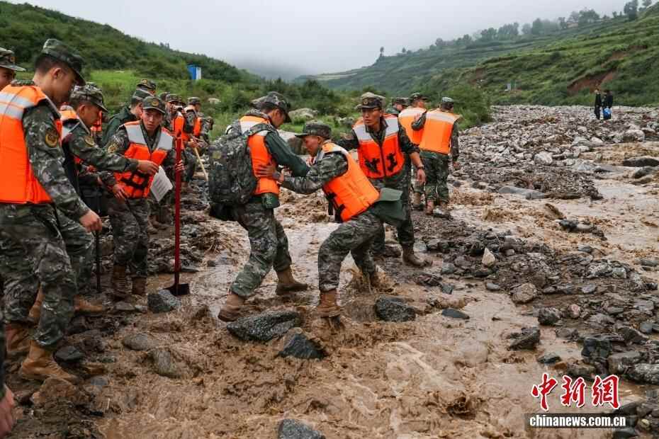 8月8日,武警甘肃总队机动支队官兵在甘肃省兰州市榆中县马坡乡旧庄沟村展开救援。