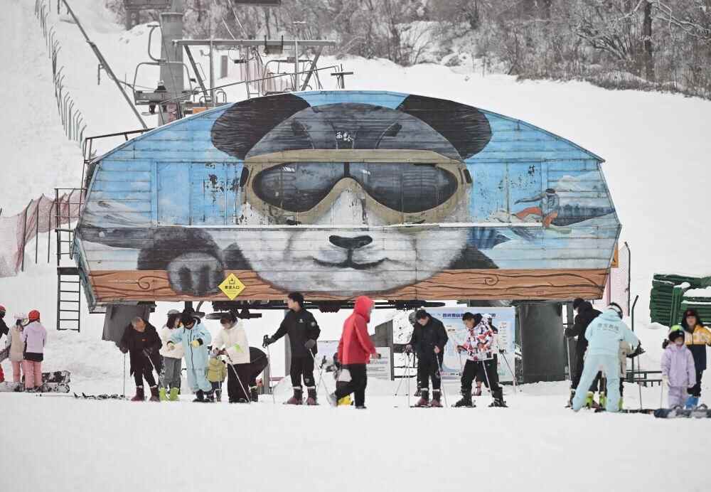 2025年1月14日,游客在四川成都西岭雪山滑雪场滑雪。