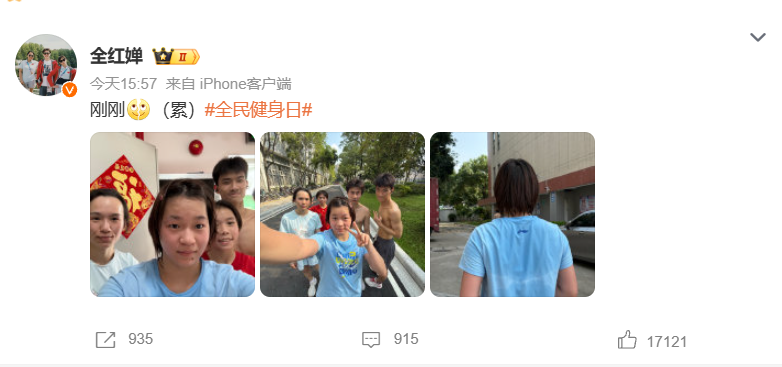 8月9日下午,话题“全红婵练瘦了”冲上热搜第一。原来,全红婵在社交平台分享了自己训练照片,并表示“刚刚(累)”。