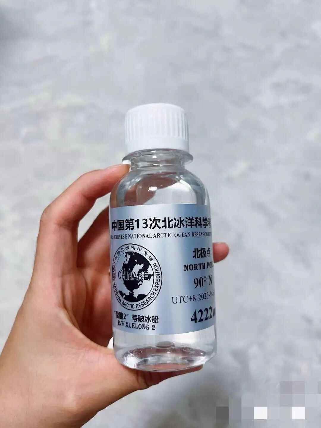 同时,记者还注意到,该样品的瓶身标注有北冰洋考察队标识、“雪龙2”号破冰船、北极点、90°N、4222m等信息。样品数量起初标注为“全国仅150瓶”,而后又更新为“全国仅100瓶”。