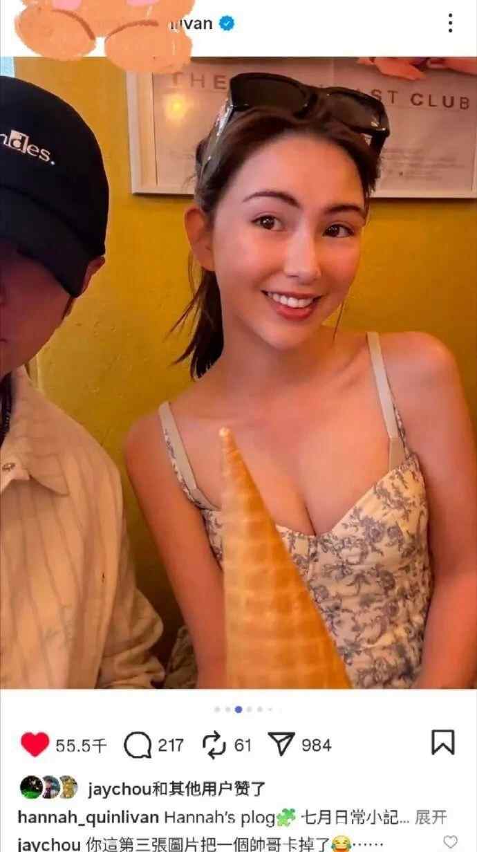 8月8日,昆凌在社交媒体分享七月生活记录(Plog)。其中一张照片,昆凌占据画面中央笑容甜美,但身旁的丈夫周杰伦却仅露出小半张脸,疑似被裁剪在画面之外。