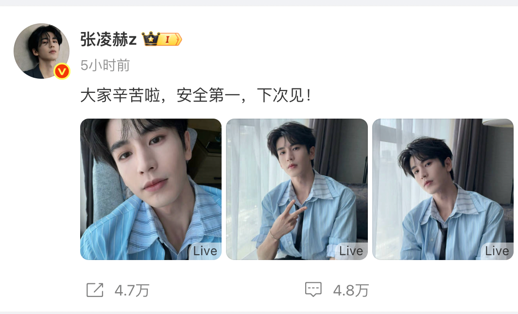 对此,张凌赫发文回应:大家辛苦啦,安全第一,下次见!