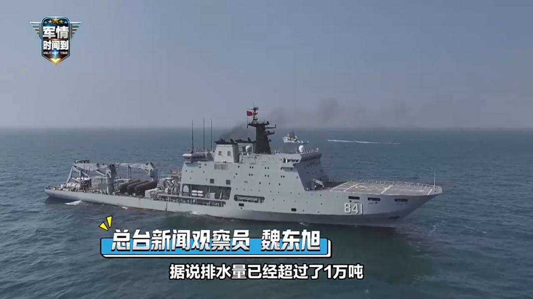 其中,海军西湖船,舷号841,是我国自行设计建造的新型综合救援船。该船信息化集成度高,模块搭载能力强,满载排水量13000余吨,具备搜救、医疗、维修等救援能力。
