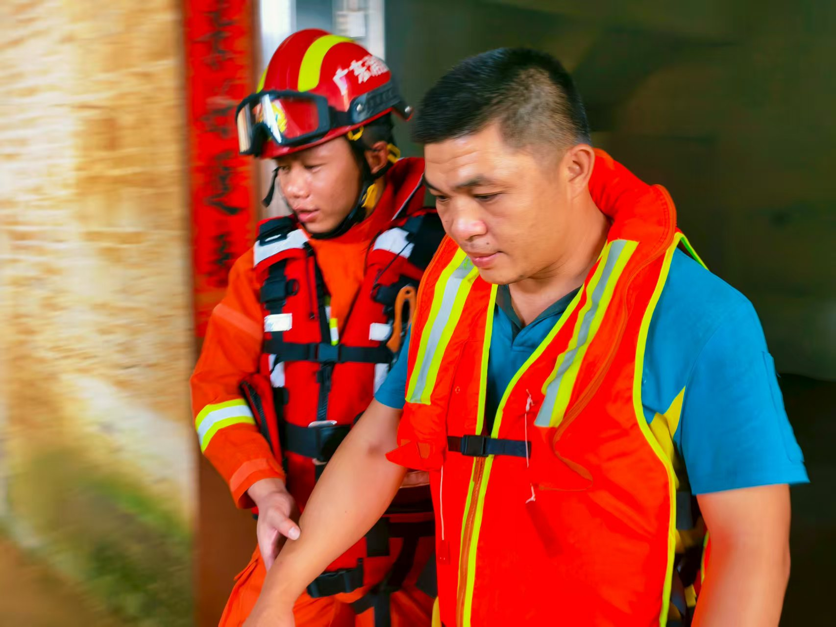 在救援过程中,有一个场景让黄先榆至今难忘。当他们排查到村里的一处老宅时,听到一位老奶奶正抱着一个孩子在窗边焦急地呼喊,他立刻带领队员靠近。情况紧急,黄先榆当机立断,让队员们在下方做好接应,自己则沿着湿滑的墙体,一步步向上攀爬。经过十几个小时的救援,他已经累得气喘吁吁,但看到老奶奶和孩子恐惧的眼神,这位“95后”的消防员立刻打起精神,小心翼翼地将孩子抱在怀里并搀扶着老奶奶,及时将他们转移到临时安置点。当时,老奶奶紧紧握着他的手,激动得说不出话来,只是一个劲地抹眼泪,小孩也懂事地对他说:“谢谢消防叔叔。”那一刻,黄先榆觉得所有的疲惫都烟消云散了,“能看到他们平安,再苦再累都值了。”