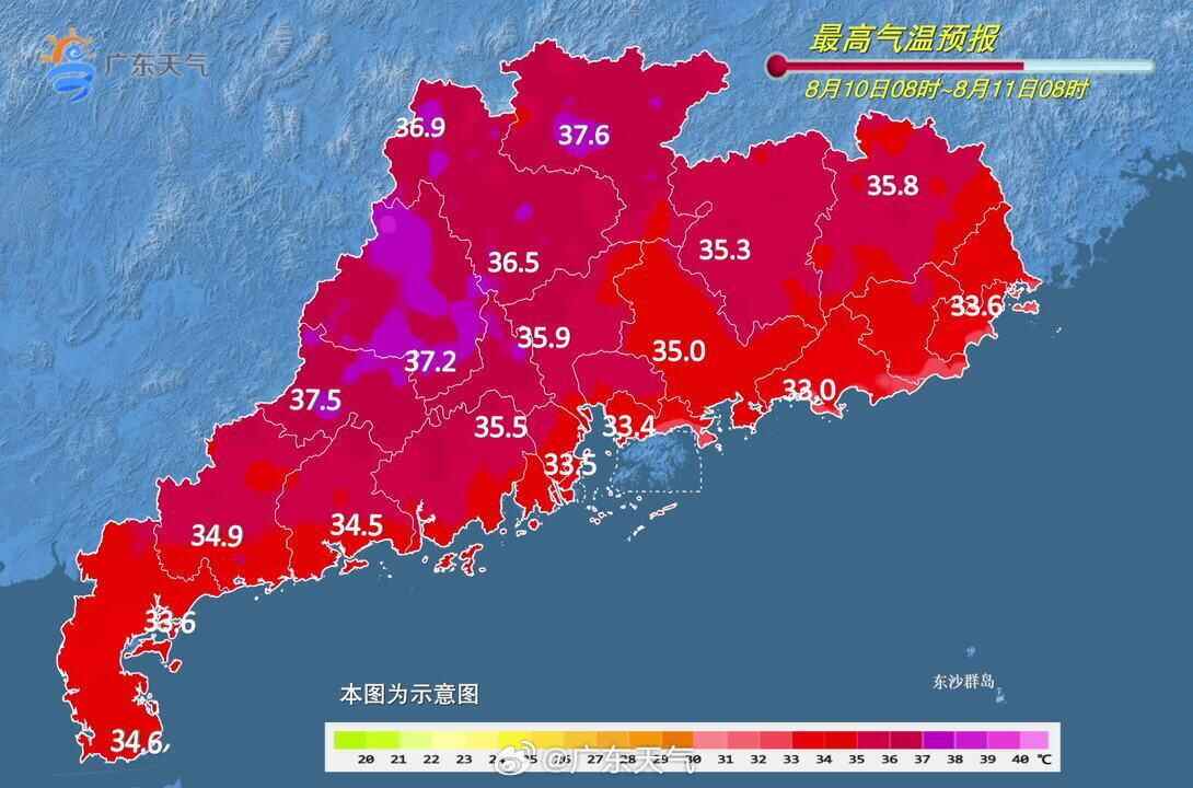 昨天(9日),广东被太阳“烤焦”了,最高气温第一名是佛山南海36.8℃。