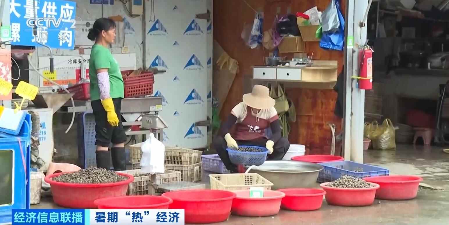 打捞起来的螺蛳接着会被送到批发市场进行加工和批发销售。在柳州海吉星农贸市场,30家螺蛳加工店一字排开,店主介绍,平均每天都要卖出1000斤。除了鲜螺,螺肉经过深加工,去壳晒干后也可整袋对外销售。据了解,在这个农贸市场,每天仅螺蛳的加工交易量就高达5万斤。
