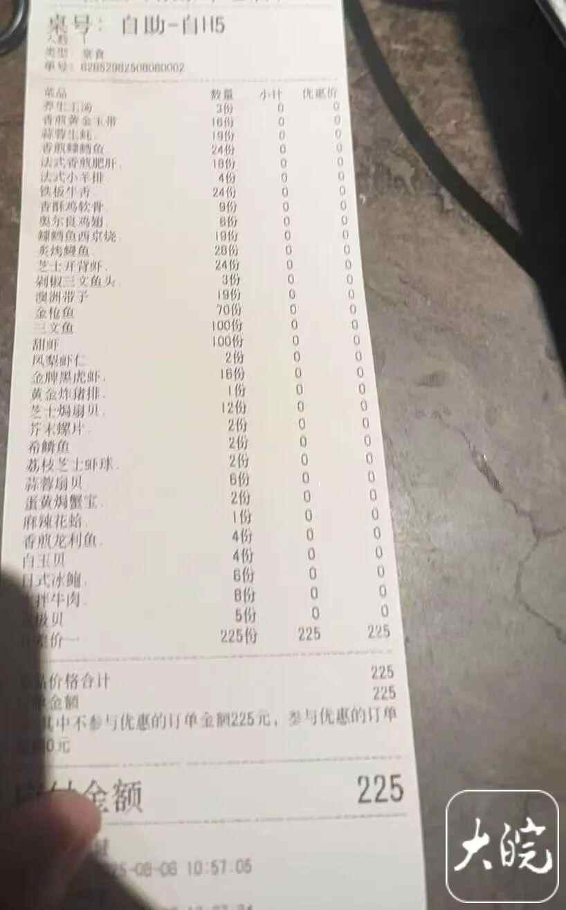 记者从卞店长提供的当事女子消费小票来看,该女性食客当时点单总量较大,其中仅三文鱼和甜虾便各点了100份。