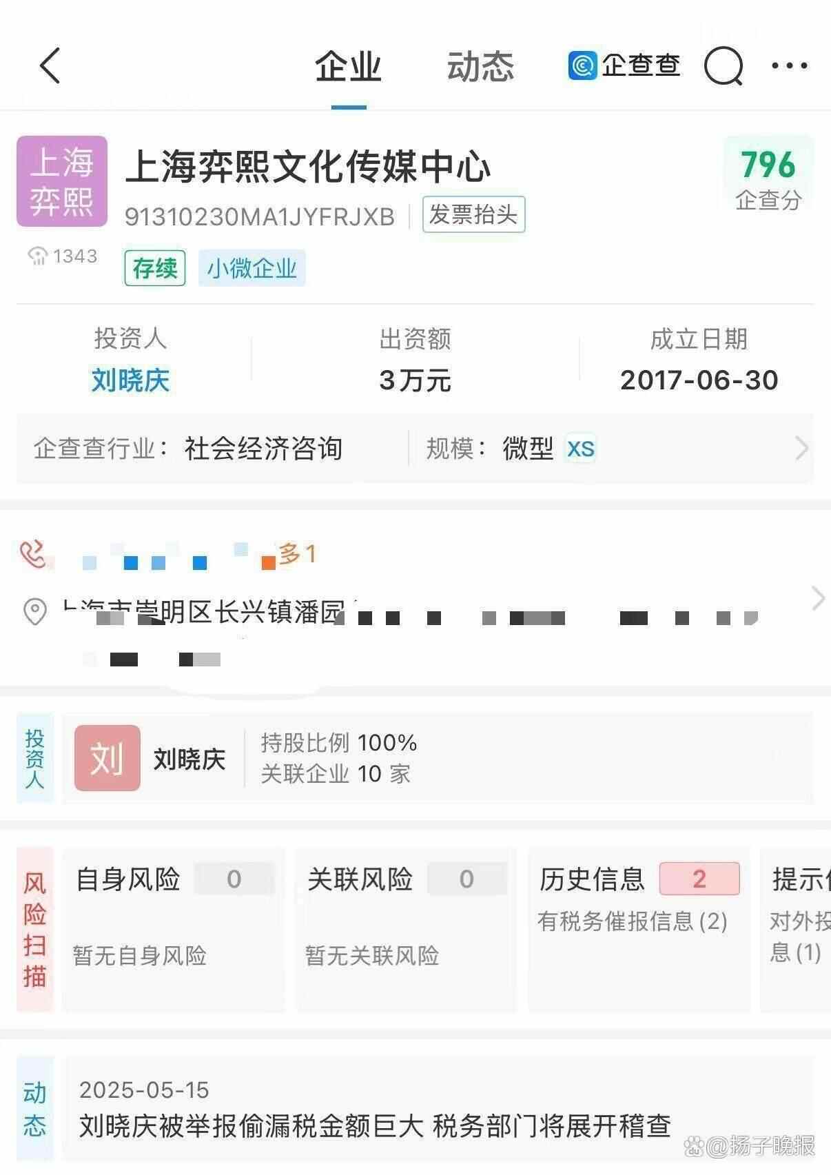 据企查查信息显示,刘晓庆名下关联10家企业,7家为吊注销状态,仅3家公司存续,行业均涉及文化、体育和娱乐业。其担任被指控的上海弈熙文化传媒中心投资人角色,该公司成立于2017年6月,出资额3万元。