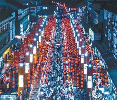 暑期,河南洛阳市十字街夜市熙熙攘攘。青石板路、传统门楣古风古韵,一串串大红灯笼高高挂起,小吃摊的吆喝声此起彼伏。