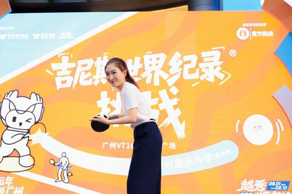挑战活动主会场设在天河核心商圈VT101维多利广场,乒乓球奥运冠军、双鱼品牌代言人刘诗雯来到现场,带领参与者进行运动热身,分享乒乓球运动的魅力与乐趣,进一步拉升了“全运年·看广州”的热烈氛围。