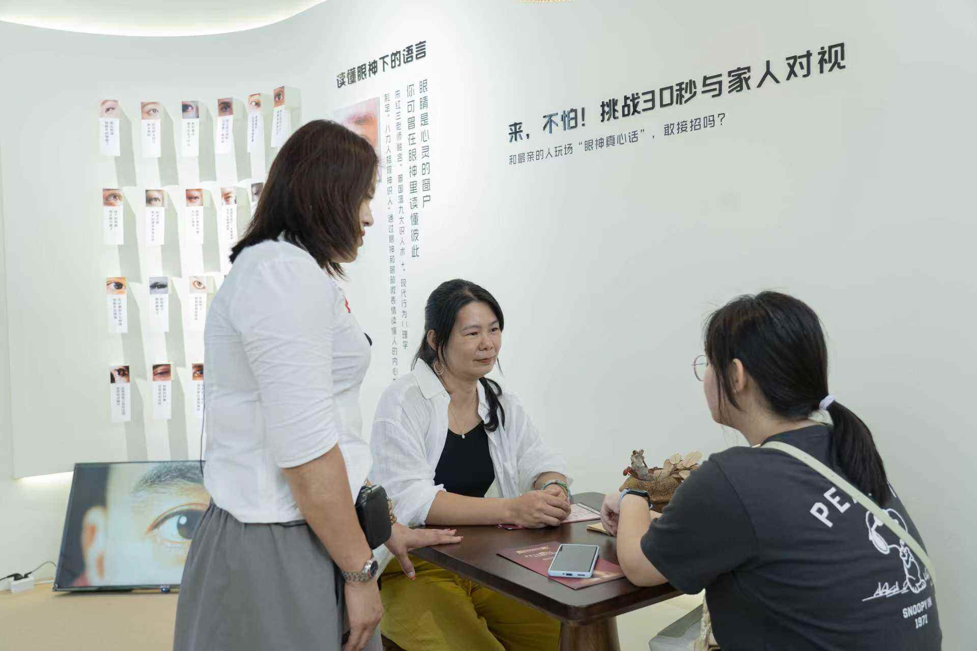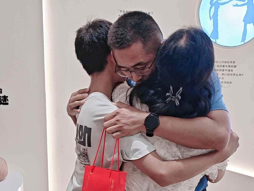 展馆现场,一位先生告诉记者,自己是被妻子“拖”进展馆的,“刚开始半推半就走进来,但里面的内容真的是一针见血揭露了我们家庭生活中遇到的很多问题,我们其实应该学会怎样更懂对方”。在体验完“30秒对视挑战”后,先生刚入馆时脸上的不耐烦早已消失不见,取而代之的是与妻子的紧紧相拥。这也是朱红兰所希望的每个家庭在参观完家庭关系展馆后能够实现的效果。