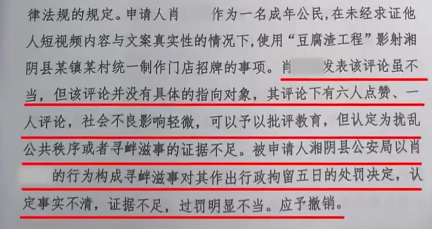 今年6月,湖南湘阴人肖新良拿到了一份判决,撤销了他曾接受的行政拘留处罚。两年来,他经历2次上诉,3次判决。而这份他求改判的行政处罚,最初只是因为在一段30秒视频的下方,发布了一条12字评论。