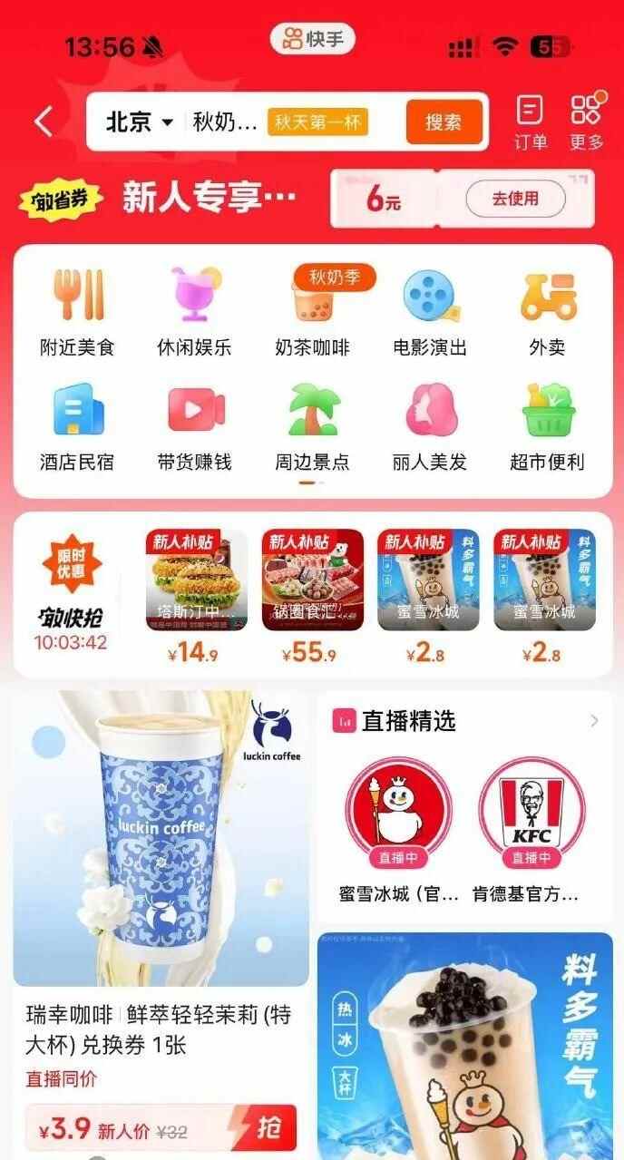 当前,快手“外卖”中的商品以第三方合作共建为主,集中推介优质餐饮商品,后续将覆盖更多商家及品类。