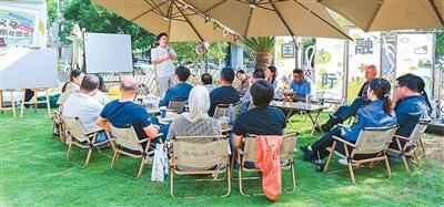 中外居民一起在社区里围坐议事。