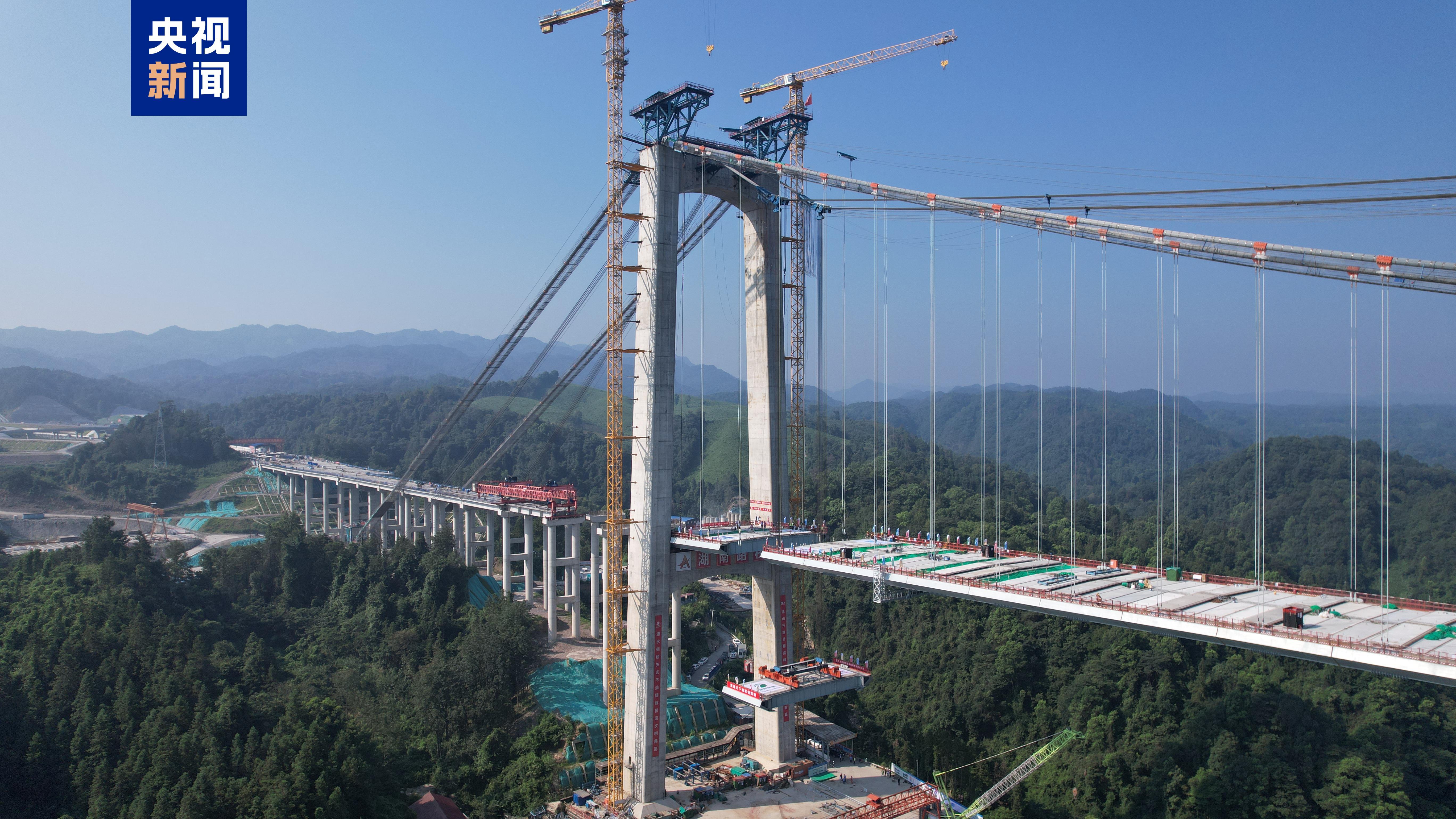 主桥设计为跨径800米双塔单跨悬索桥,是呼北高速张家界至官庄段的关键控制性工程。