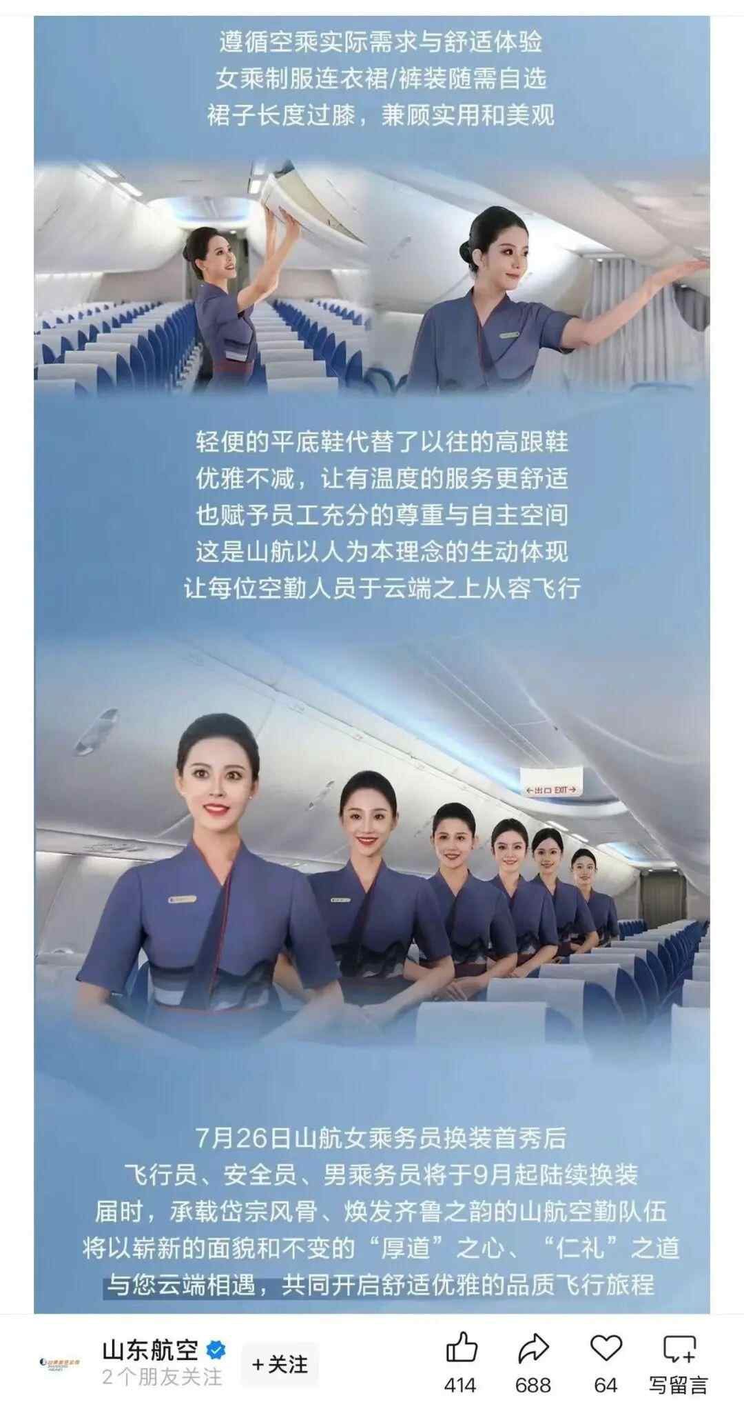 各航司乘务员“去高跟鞋”“自选裤装或裙装”正成为一种趋势。