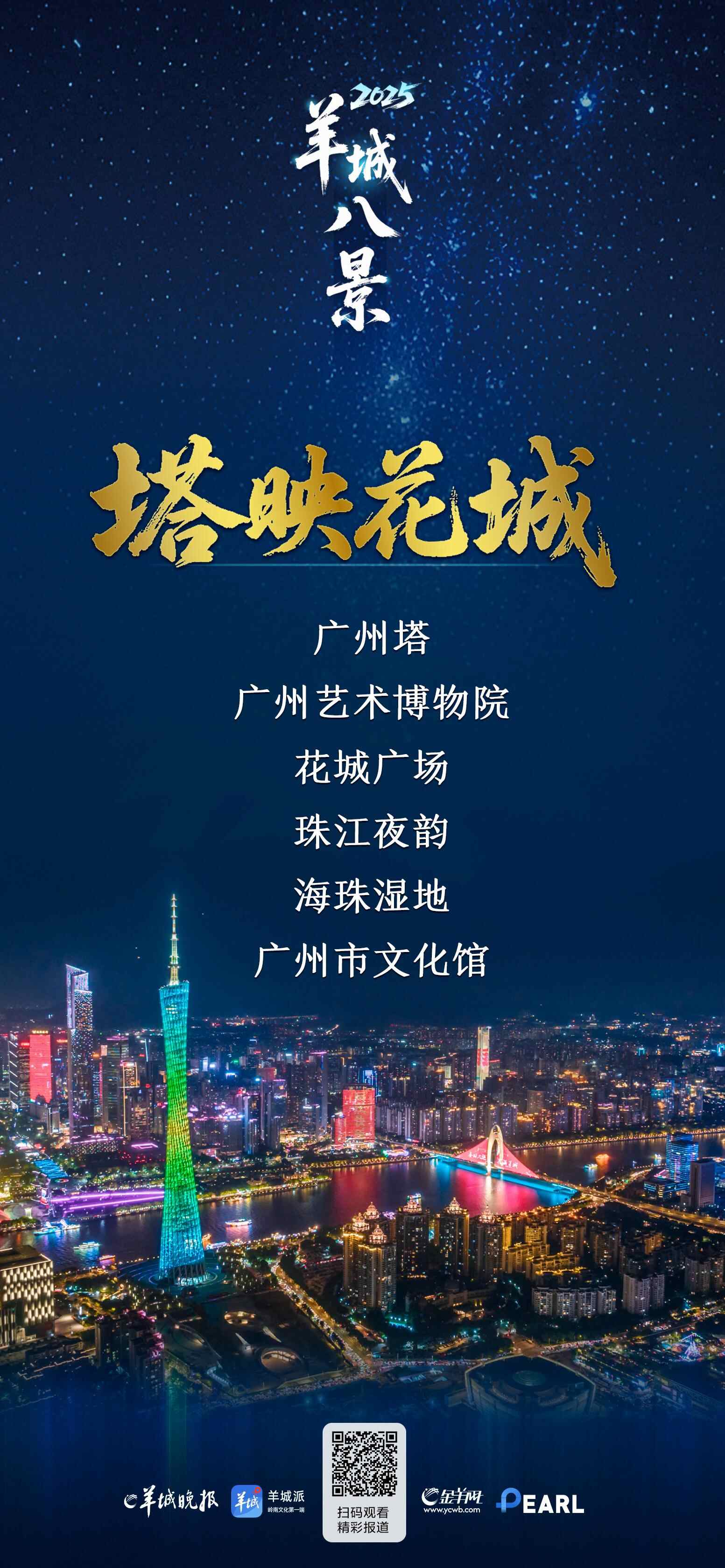 8月3日晚,2025年“羊城八景”正式发布。经过自主推荐、大众投票、专家评审等环节,塔映花城(含广州塔、广州艺术博物院、花城广场、珠江夜韵、海珠湿地、广州市文化馆),被评为2025年“羊城八景”之一。