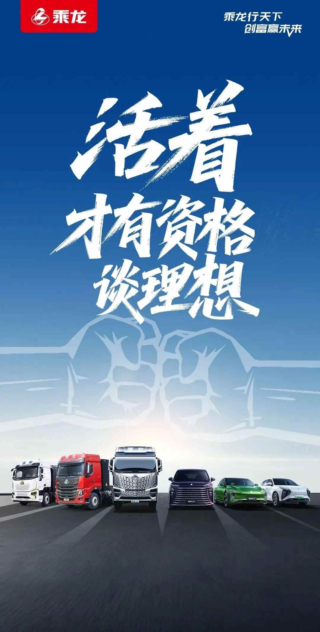 8月2日,乘龙卡车发布海报并配文:活着,才有资格谈理想,再次回应近期“理想i8撞重卡”视频风波。