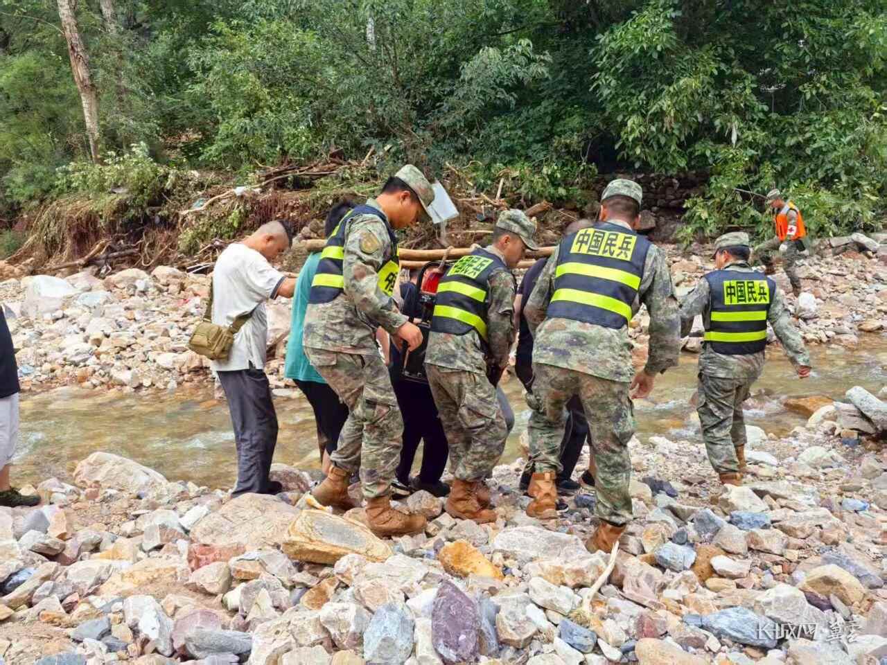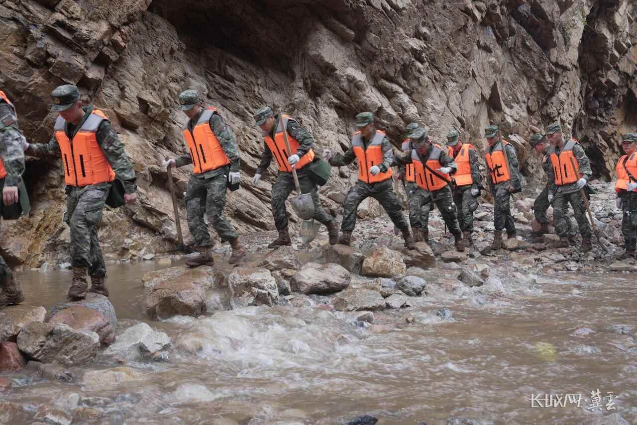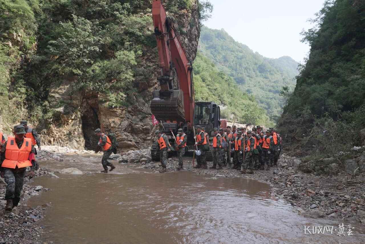 8月1日,武警河北总队承德支队官兵正在前往兴隆县六道河镇朱家沟村,开展进一步救援工作。长城网·冀云客户端记者 姚杰 摄
