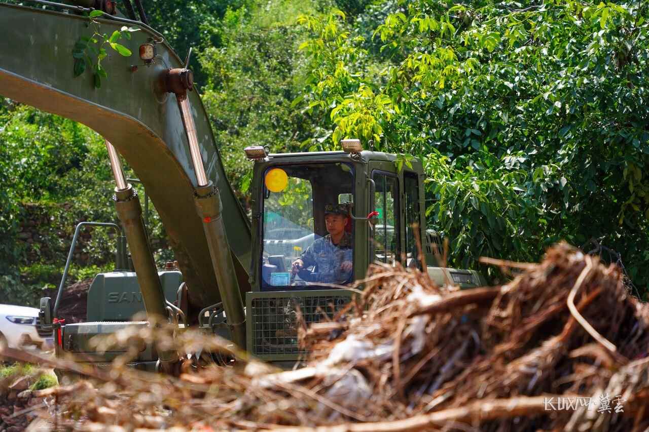 8月1日,解放军某部工兵部队正在修复兴隆县六道河镇五道河村通往朱家河村的损毁道路。通讯员 张达宁 摄