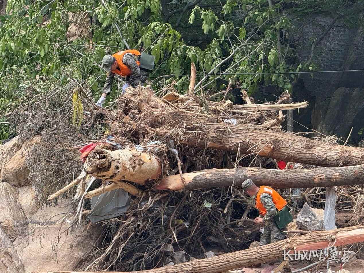 8月1日,兴隆县六道河镇朱家沟村进村道路打通后,武警河北总队承德支队官兵继续在该村开展搜寻工作。长城网·冀云客户端记者 张嘉琪 摄
