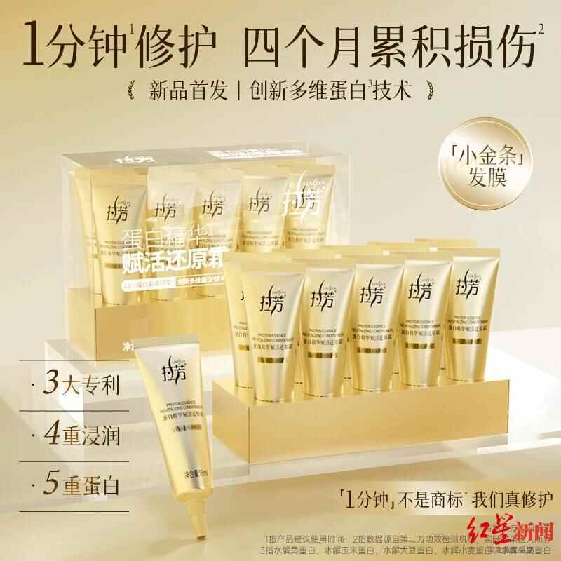 近期,拉芳上线了一款名为“拉芳小金条发膜”的护发产品,在其天猫旗舰店的宣传海报中,拉芳特别标注:“‘1分钟’不是商标,我们真修复”。