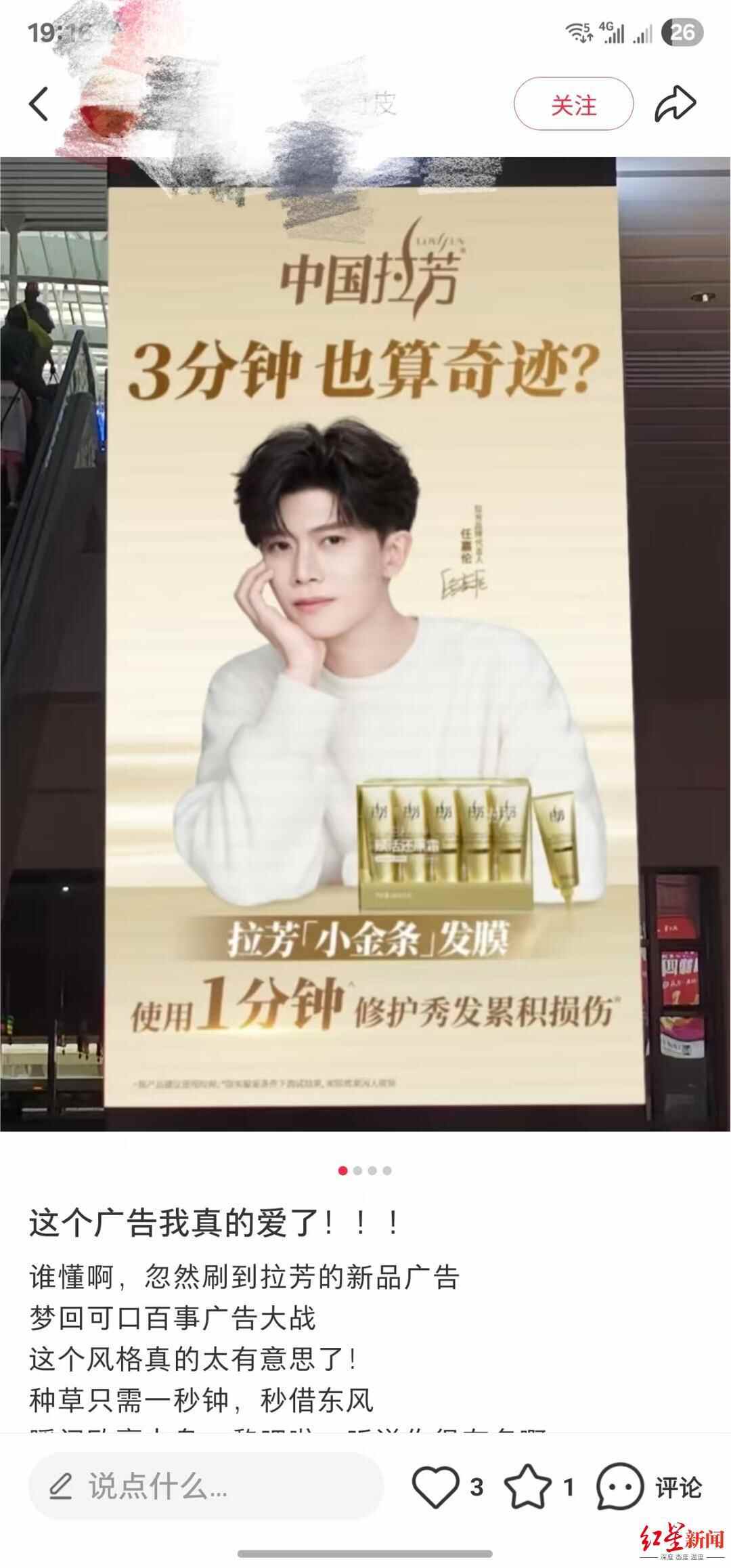 拉芳发布“1分钟修复”广告后,有网友感叹:“拉芳这是直接贴脸开大”“高端的商战往往采用最朴素的方式”。