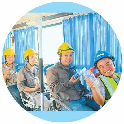 当黄开椿抵达工地,车外温度已经升至35摄氏度。吃完午饭的工人们拖着疲惫的身体,上车找位置坐了下来。吹着凉爽的空调,大家的表情逐渐放松下来。“除了开放空调,我们还向工人们免费提供饮用水、藿香正气水、风油精等纳凉物品。”黄开椿说,每天上午11点会准时把车开到工地,到下午3点再离开。