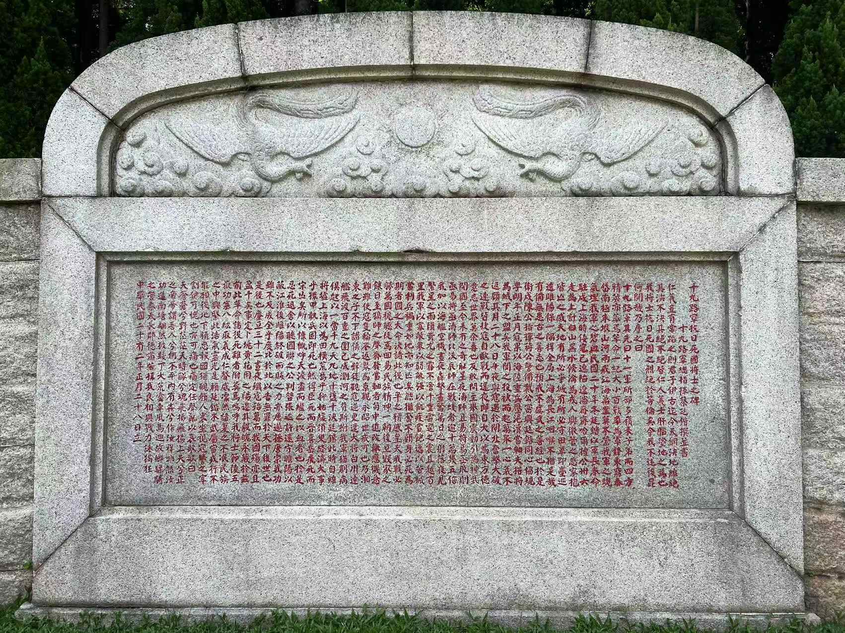 走进陵园,将士墓前,松柏青翠,字字鲜红,讲解员文丽雅带我走到字最多的一块碑前,上书《十九路军抗日死国将士之碑》,落款是蔡廷锴。丽雅念了其中一段碑文,她说:“我每次念都起鸡皮疙瘩。”我说:“我鸡皮疙瘩也起来了。”