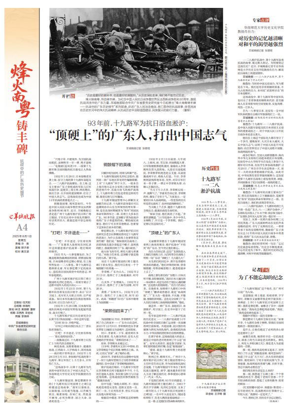 一·二八淞沪抗战中,第十九路军奋勇抗战的故事,被无数人铭记。为何要铭记这段历史?近日,羊城晚报记者专访华南师范大学历史文化学院教授肖自力,解读抗日战场上的爱国情怀。