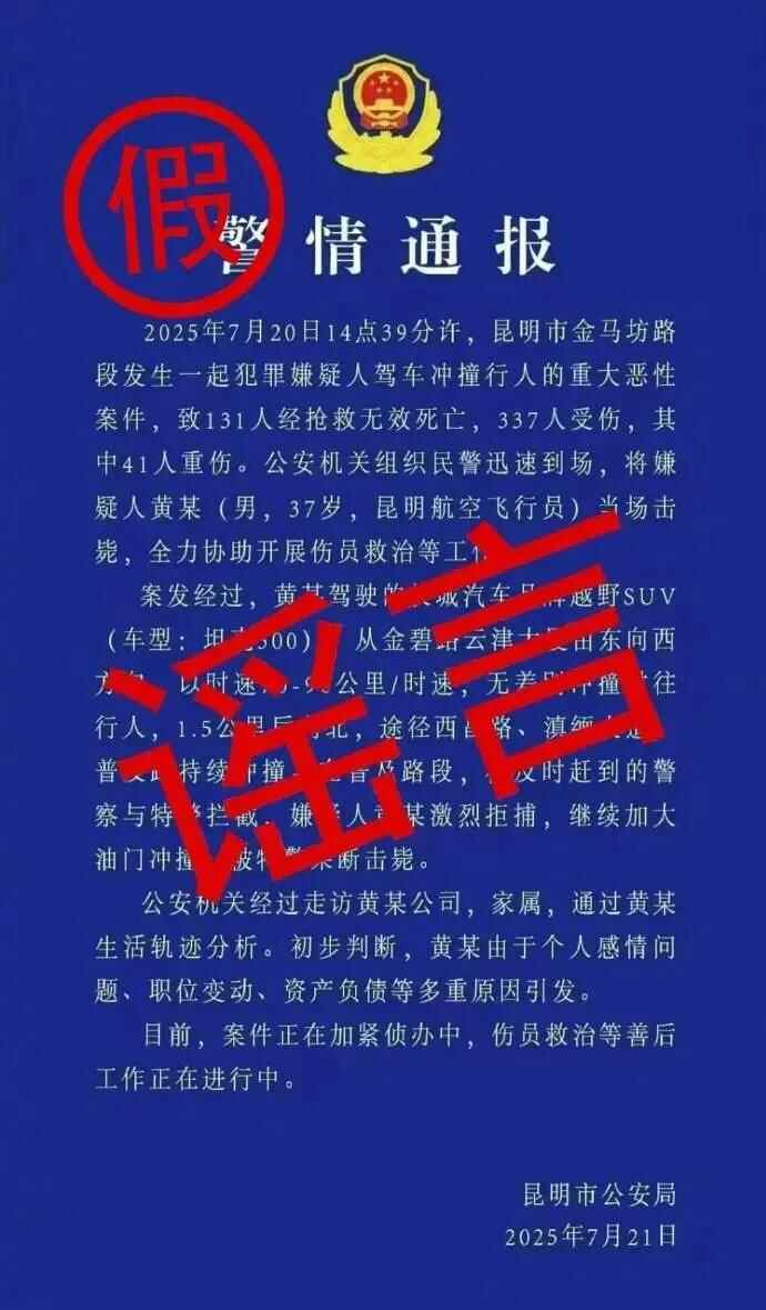“警情通报”是公安机关权威信息发布的重要载体,“蓝底白字”代表着官方信息的公信力。发布虚假“警情通报”,炮制恶性网络谣言,捏造耸人听闻的细节,误导公众认知,不仅消费了网民情绪,更损害了政府公信力,甚至引发公众恐慌,其行为严重扰乱社会秩序。