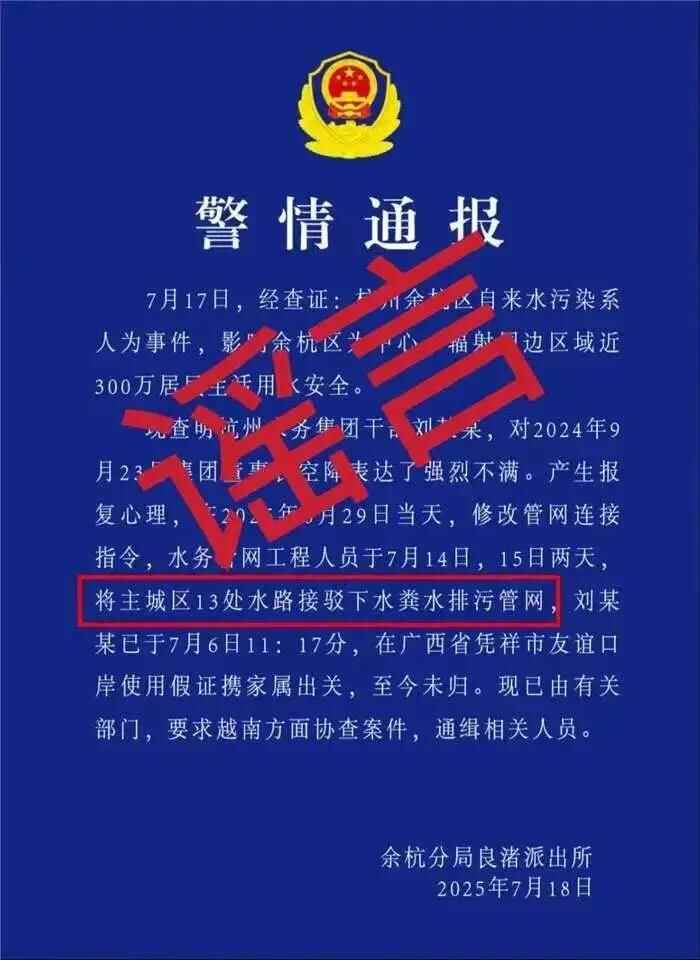 2、邵某豪发布虚假“警情通报”,传播“杭州自来水接入粪水”谣言案