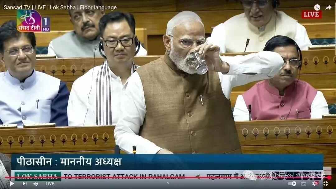 莫迪什么都没说,默默地喝了一大口水……