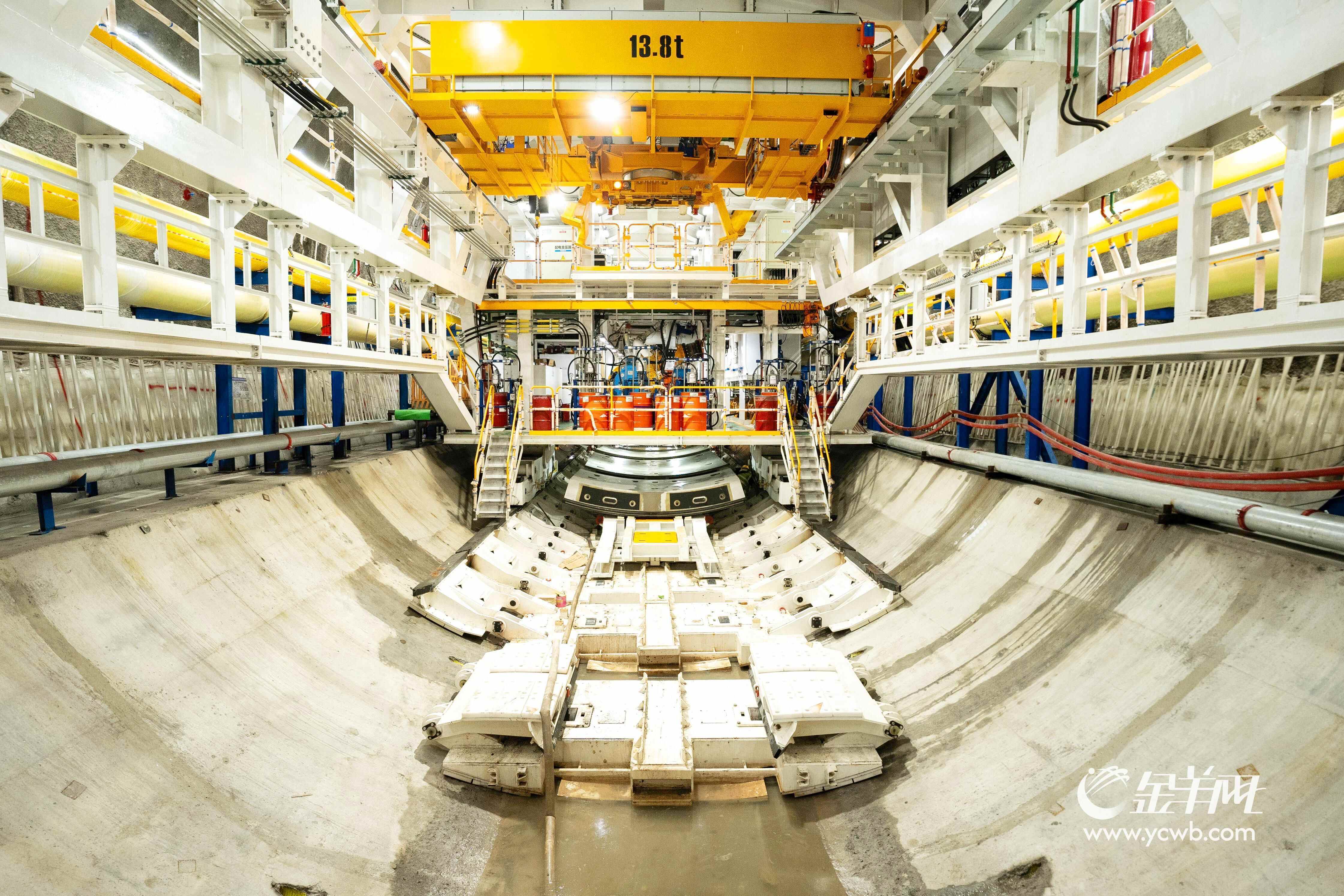 此次始发的“坪山东3号”盾构机开挖直径达14.34米,整机总长约121米,总重量约3678吨,装机总功率约9478千瓦。掘进施工的西区盾构段隧道长3850.6米,埋深最深达62.5米,为单洞双线隧道。隧道掘进地质条件复杂,需穿越弱风化花岗岩及风险源19处,河道1处、建筑物11处、道路5处、油气管线2处。且全线并行厦深铁路,与其最近距离仅8.6米。施工面临地表沉降控制难度大,盾构姿态精准控制要求高等挑战。