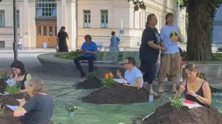 女子在德国街头偶遇神奇一幕,多人半身埋入土里晒太阳,网友:这是祛湿气还是接地气?