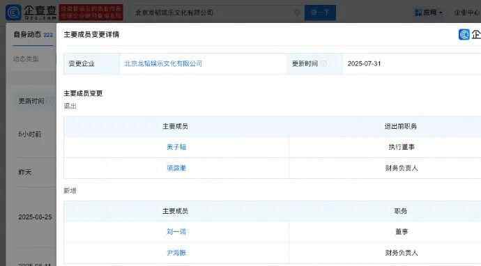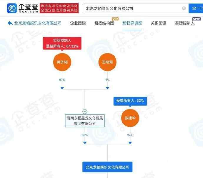信息显示,该公司由黄子韬通过海南永恒星龙文化发展集团有限公司间接持股67%左右股权。值得注意的是,黄子韬近期刚卸任该公司执行董事职务。