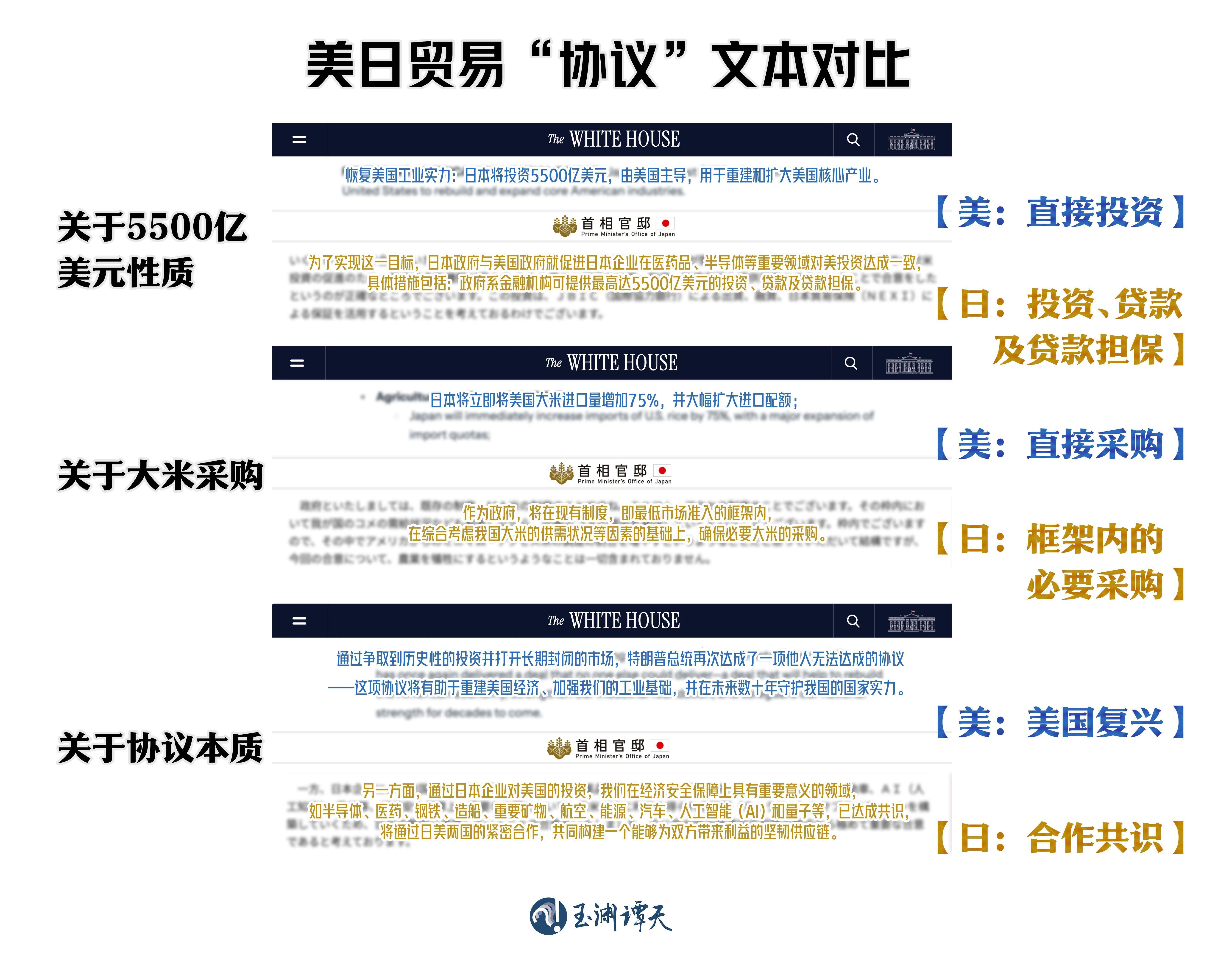 谭主梳理了美国同各国签署的协议,其中,有一个共性,就是要求各国开放市场给美国商品。