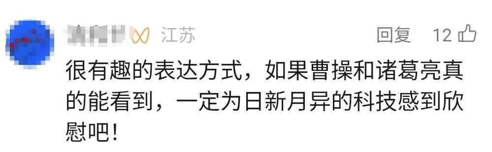 有网友留言“感觉能以另一种方式和古人对话是件很有意思的事情”“很有趣的表达方式,如果曹操和诸葛亮真的能看到,一定为日新月异的科技感到欣慰吧!”