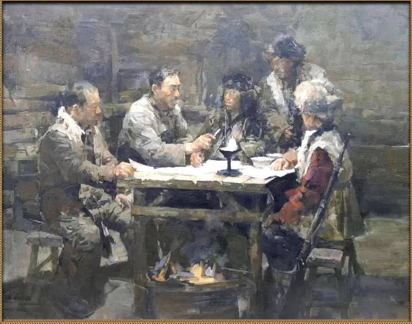 图为描绘抗日联军艰苦斗争的油画。新华社发