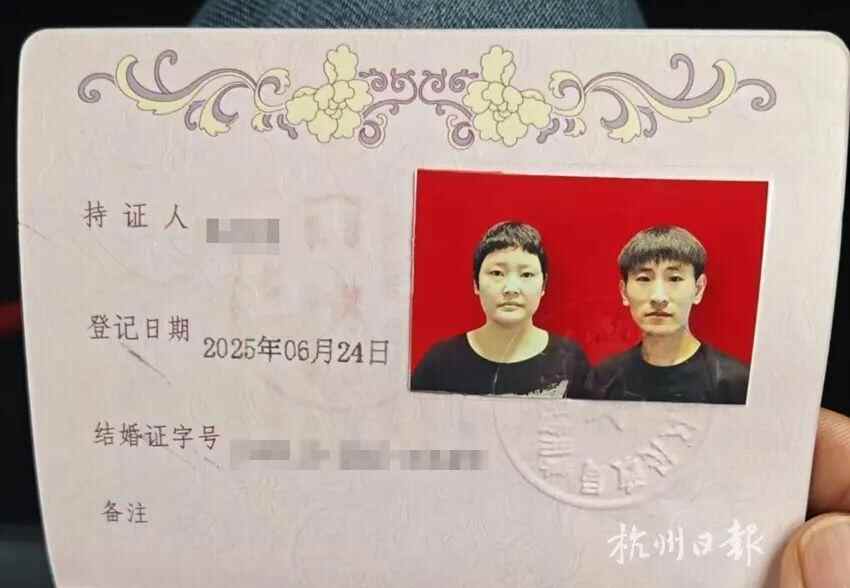 “很多话,我表达不出来。我生这个病,我没法跟他……领这个证,我对他真的很愧疚。”没说几句,张丽丽就激动地抽泣起来,轮椅随之“吱呀”作响。于维澎赶忙握住了她的手,一边帮她擦眼泪,一边凑到她耳边安慰。