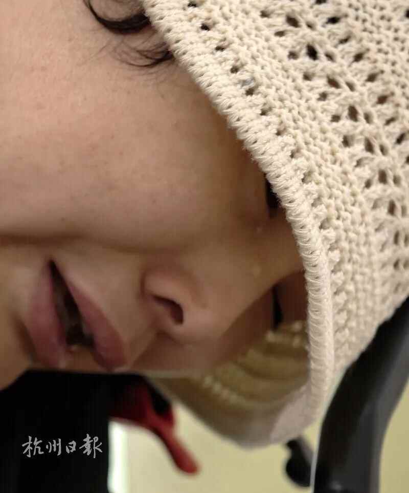 7月7日,张丽丽的状态很不好,全程蜷缩在轮椅上喘着粗气,嘴唇没有一丝血色,做得最多的动作,是吃力地抬头看一眼丈夫于维澎。