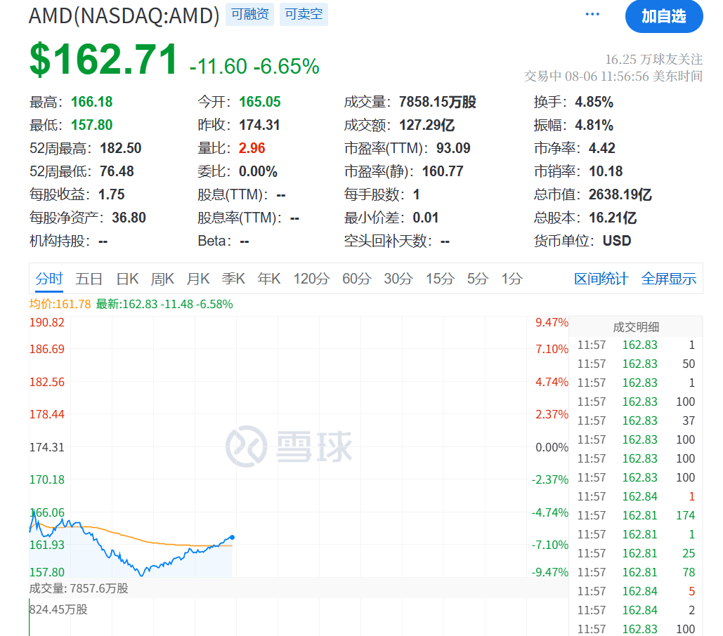 其他个股方面,AMD股价暴跌6%,消息面上,这家芯片制造商指出,其新款AI芯片产量正在提升,个人电脑处理器市场份额也在不断增长,因此将第三季度收入预期定在87亿美元,上下浮动3亿美元。该预期高于分析师平均预期的83亿美元。但AMD目前的业绩预期并未计入向中国客户付运MI308芯片的收入,因为该公司仍在等待美国政府批准其销售许可,引发了外界对其恢复对华出货时间的担忧。